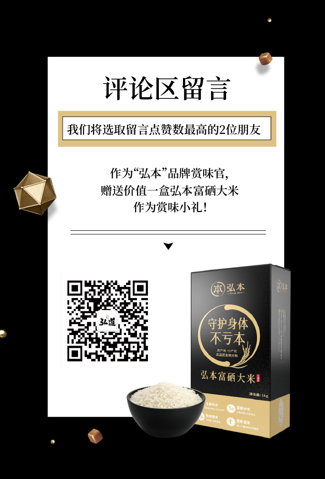 作為“弘本”品牌賞味官,贈送價值一盒弘本富硒大米,