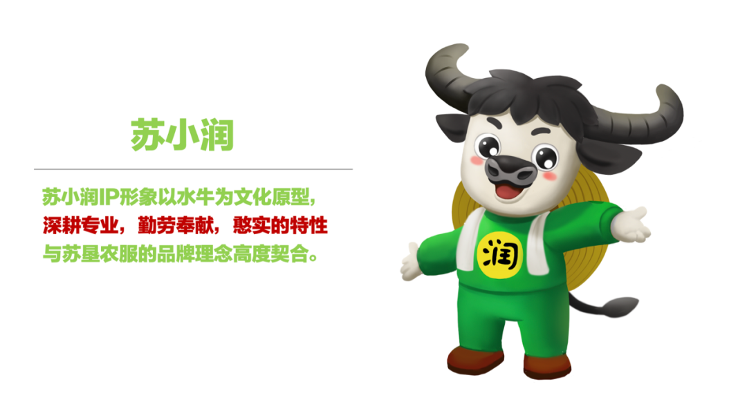 從中國(guó)農(nóng)耕文化中的“水牛”到蘇墾農(nóng)服品牌專屬代言人——“蘇小潤(rùn)”。穿越幾千年,默默服務(wù)、默默奉獻(xiàn)的本質(zhì)和精神一直沒變。