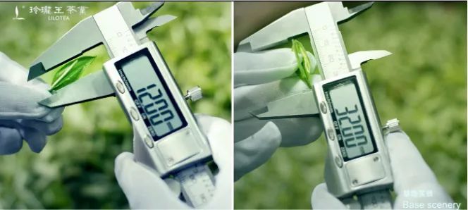 原料上,嚴(yán)格按照小葉“三圍”標(biāo)準(zhǔn)驗(yàn)收。所有鮮葉都有嚴(yán)格的尺寸要求,長(zhǎng)度僅為32-50mm,寬度僅為12-16mm。驗(yàn)收時(shí),為了保障品質(zhì),甚至用尺子進(jìn)行測(cè)量,并根據(jù)葉子的大小區(qū)分等級(jí)。最高等級(jí)鮮葉為一芽一葉,葉寬不超過(guò)12mm,葉長(zhǎng)不超過(guò)32mm。最低等級(jí)為一芽二葉,葉寬不超過(guò)16mm,葉長(zhǎng)不超過(guò)50mm。同時(shí),收茶現(xiàn)場(chǎng)還將對(duì)茶農(nóng)采摘的鮮葉每人次、每批次進(jìn)行100%農(nóng)殘檢測(cè),若每年有2次指標(biāo)超標(biāo),他們將被記入“黑名單”,全年不再收購(gòu)該茶農(nóng)的鮮葉。